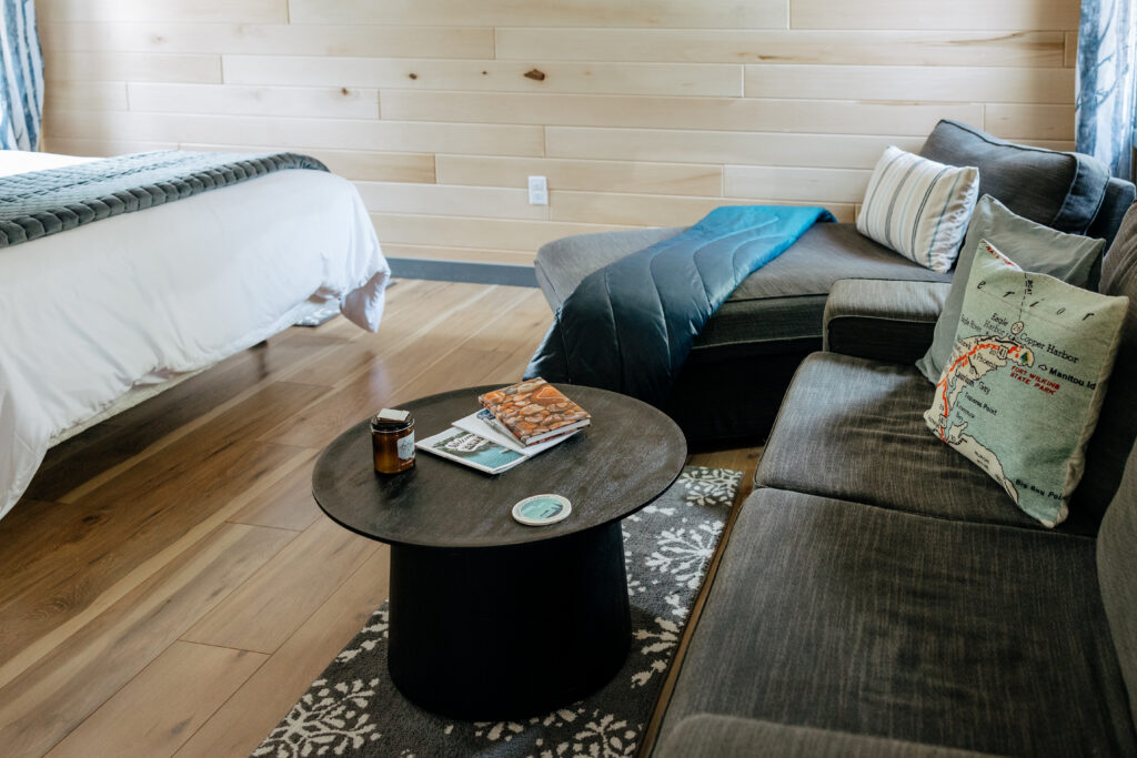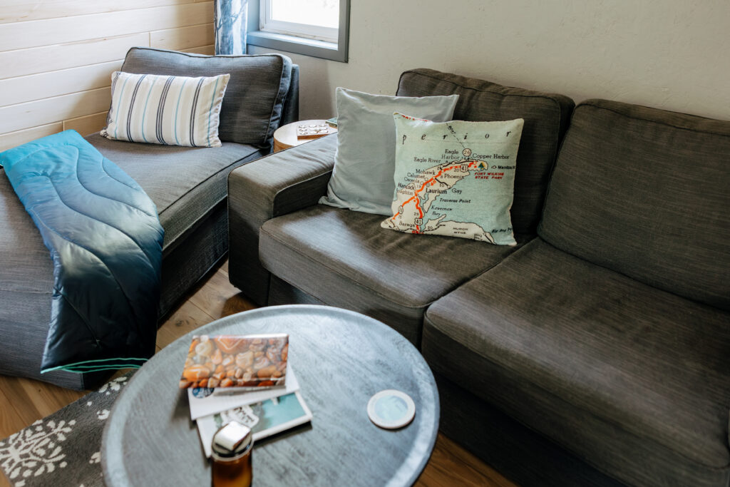 A basic, 500 sq ft Northwoods cabin with a prized screened-in porch for outdoor living, minus the bugs. You’ll find everything you need in the fully stocked kitchen to prepare meals and dine on your porch. The cabin is setup like a studio with plenty of room for a relaxing living area, making it the perfect place to enjoy the Keweenaw.