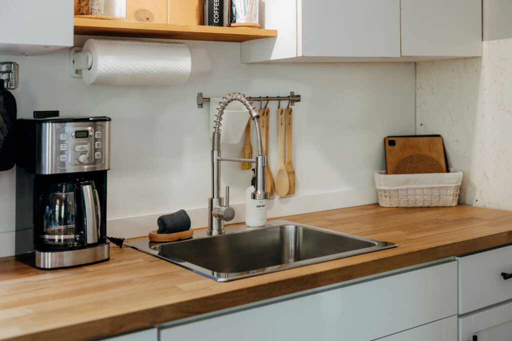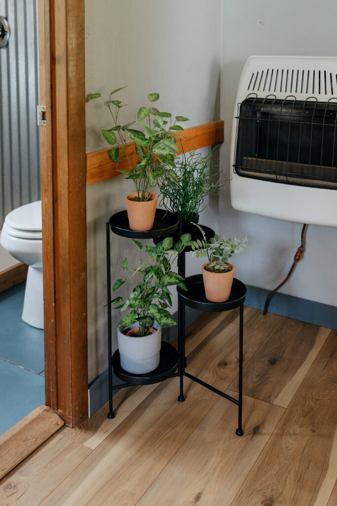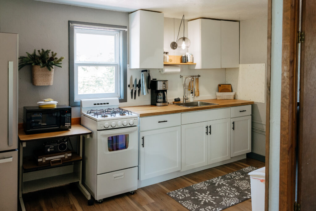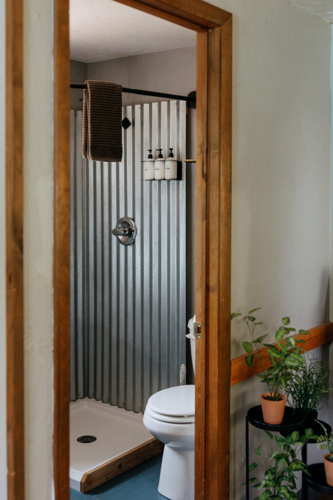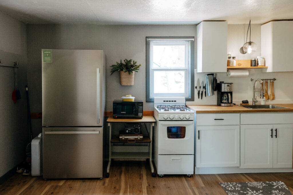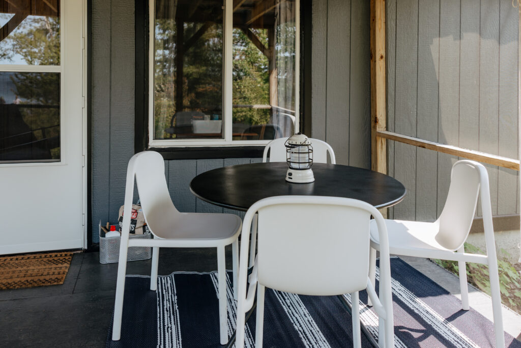 The half-bathroom includes a stall shower, toilet, and sink. Like many small cabins built during this era, there isn’t much room in the bathroom and the fixtures are a bit dated—a funny quirk we look forward to updating as we renovate! Sorry, no dogs are allowed in this cabin, but check out dog-friendly Cabin 5 if you want to bring Fido.